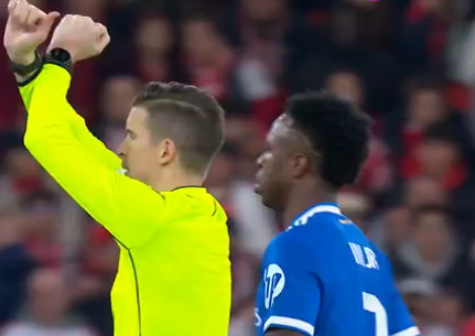 Aos quatro minutos do segundo tempo, Vini Jr recebeu passe de Kylian Mbappé pela esquerda e finalizou da entrada da área, acertando o ângulo do goleiro Anatoliy Trubin. Na comemoração, dançou próximo à bandeira de escanteio, em frente à torcida adversária. Em seguida, jogadores do Benfica foram tirar satisfações com o atacante, que acabou advertido com cartão amarelo pelo árbitro François Letexier. Logo depois, o brasileiro relatou ao juiz ter sido chamado de “mono”, termo racista em espanhol que significa macaco, após discussão com Gianluca Prestianni.