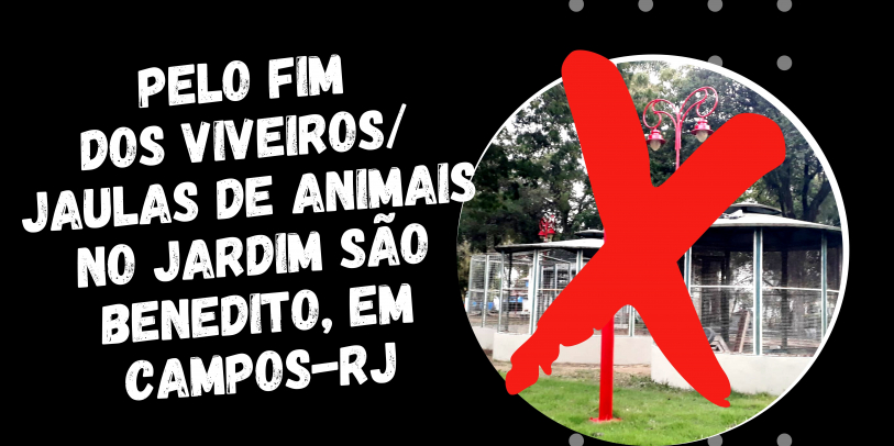 Solicitamos à Prefeitura Municipal de Campos dos Goytacazes-RJ, à Secretaria Municipal de Meio Ambiente de Campos dos Goytacazes-RJ, ao Centro de Controle de Zoonoses de Campos-RJ e/ou outros órgãos que porventura sejam os responsáveis pela questão desses animais e da estrutura do espaço que NÃO REATIVEM OS VIVEIROS/JAULAS DE ANIMAIS NO JARDIM SÃO BENEDITO, e que no lugar de animais coloquem plantas ou desativem por completo tais viveiros, visto que ANIMAIS NÃO SÃO ENTRETENIMENTO e colocar animais em exposição nessa praça pública, enjaulados, vai de encontro a todos os esforços progressistas, humanitários e políticos que vêm sendo feito no Brasil e no mundo!
