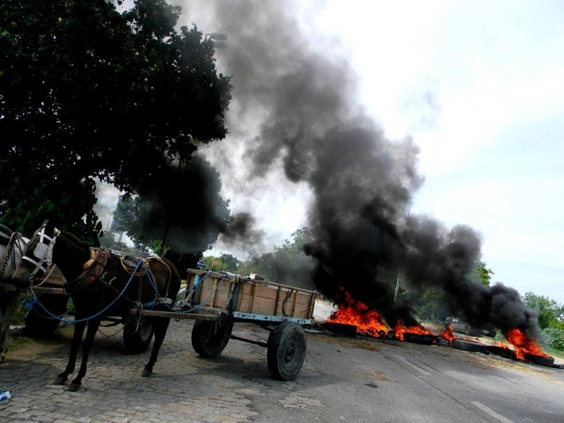 Protesto de carroceiros na BR-101 em 2016, quando a Lei Estadual foi sancionada. Foto: Thaís Tostes