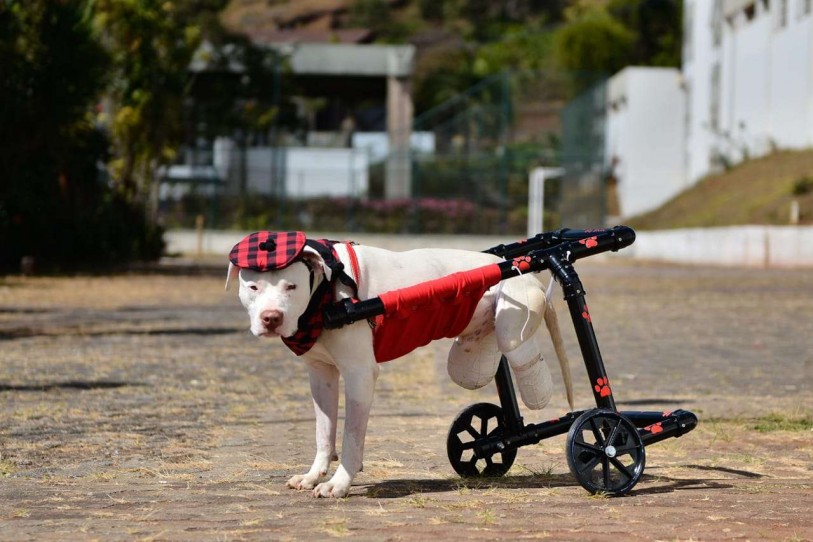 Cachorro Sansão, que teve suas pernas decepadas com facão, e deu origem ao nome da Lei Sansão, que aumentou para cinco anos de cadeia a pena para maus-tratos contra cães e gatos.